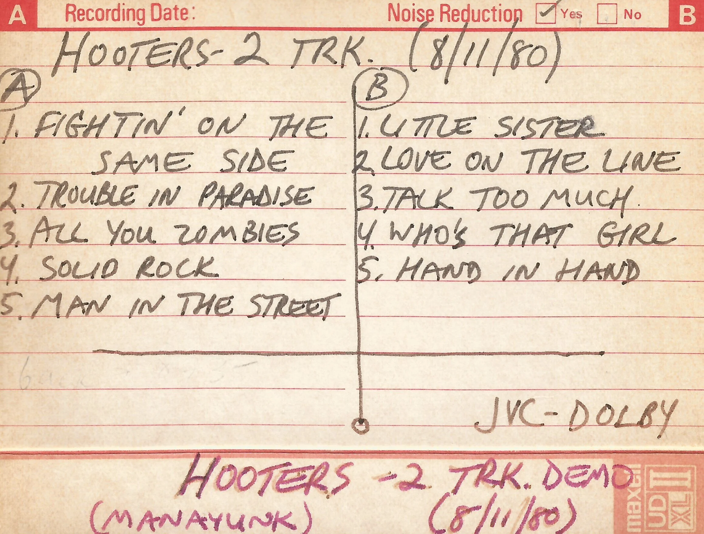 The show was broadcast live on rock station WMMR and led to the release of another 45 by popular demand, a live version of “All You Zombies”. A major high point of this original Hooters lineup was opening an outdoor festival show at JFK Stadium in 1982 with The Who, The Clash, and Santana.