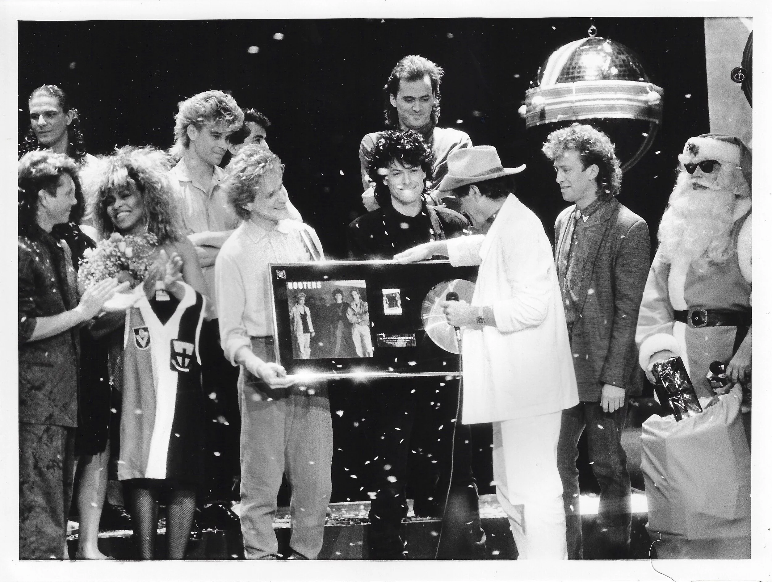 It was an exhilarating time for the group. Rolling Stone magazine named The Hooters the "Best New Band of the Year" in 1985 - they also shared such a nomination at the MTV Music Awards. And in July of that year, the group was thrilled and honored to open the historic Live Aid concert at JFK Stadium in Philadelphia. The national touring continued and in the following summer of 1986, The Hooters were invited to perform at the Amnesty International Concert at Giants Stadium, NJ, with global artists such as U2, the reunited Police, Miles Davis, Fela, Lou Reed, and Peter Gabriel among many others.